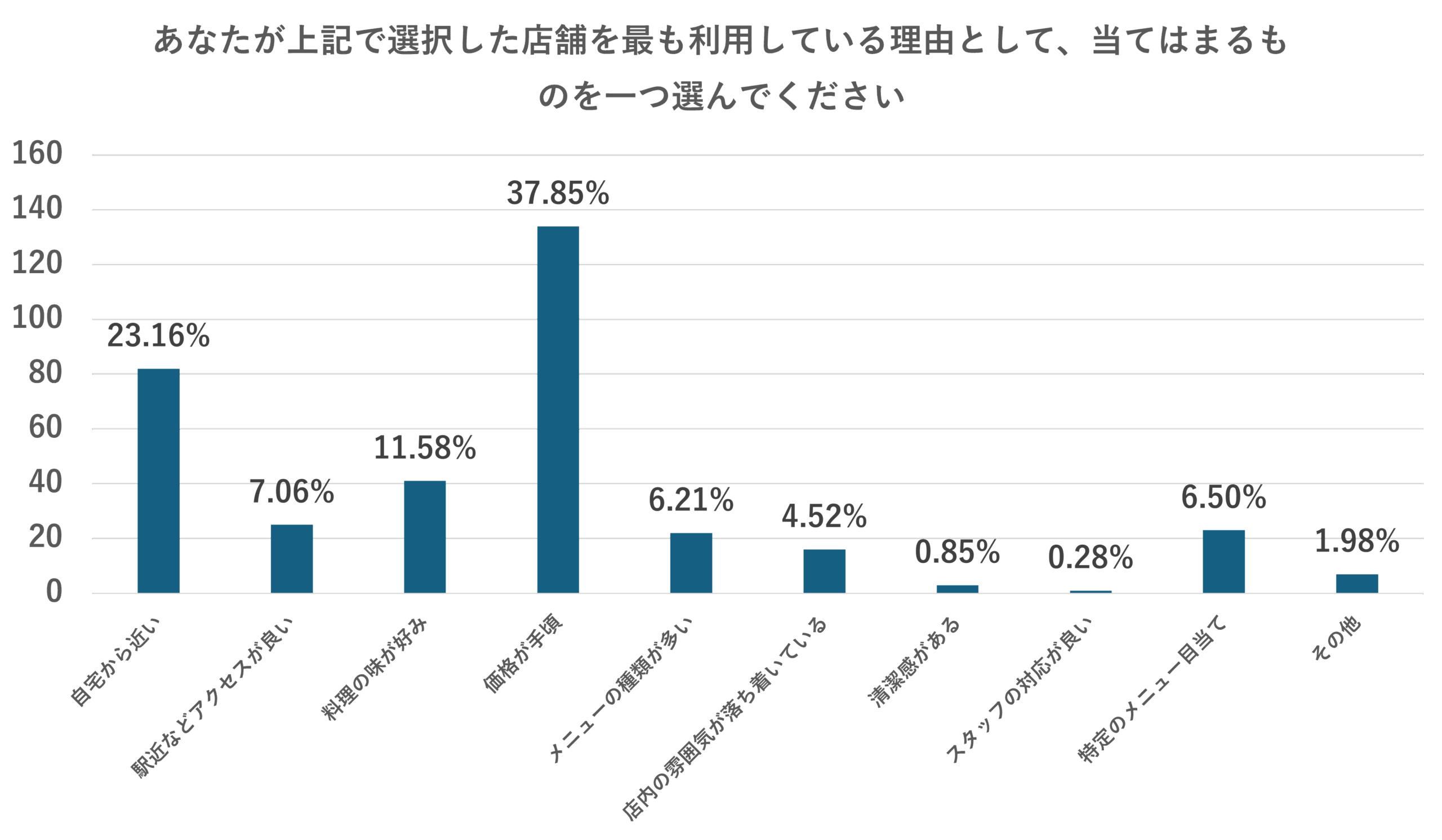 ・あなたが上記で選択した店舗を最も利用している理由として、当てはまるものを一つ選んでください。 ※以下調査2という