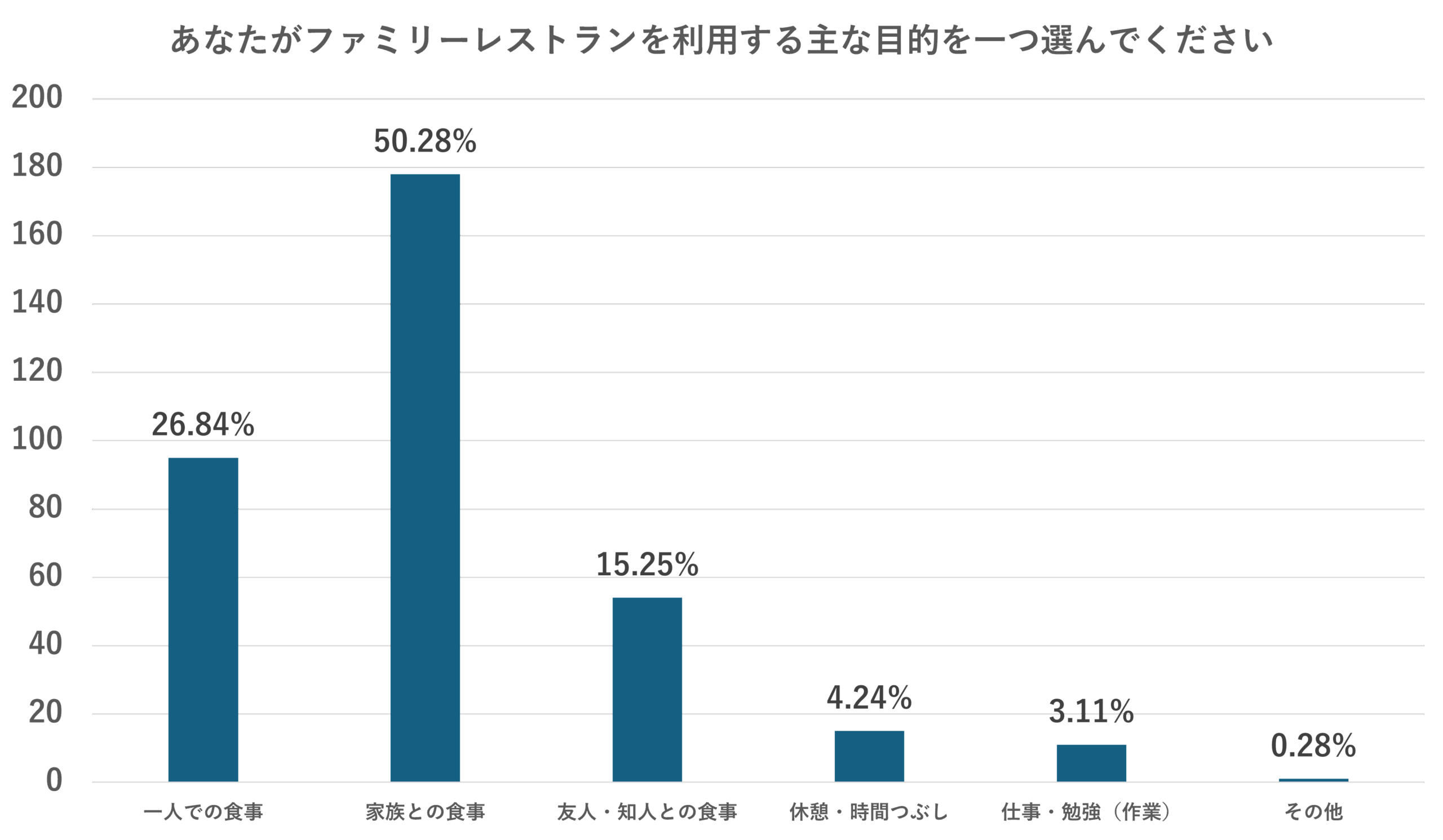 ≪調査4≫あなたがファミリーレストランを利用する主な目的を一つ選んでください。