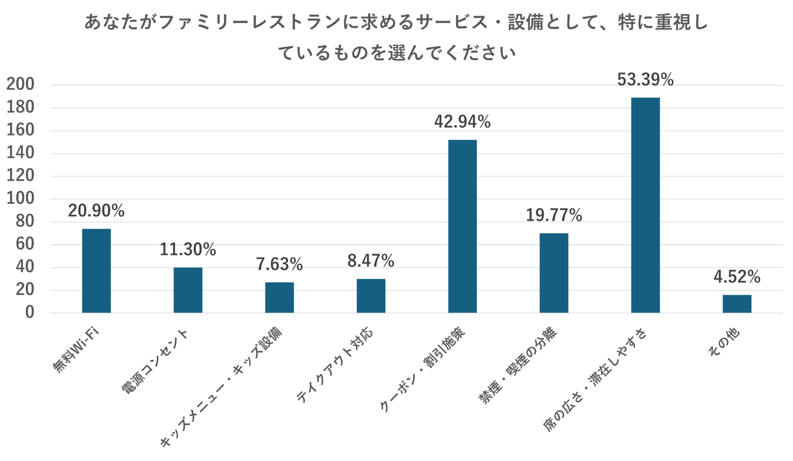 ・あなたがファミリーレストランに求めるサービス・設備として、特に重視しているものを選んでください。 ※以下調査5という